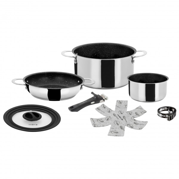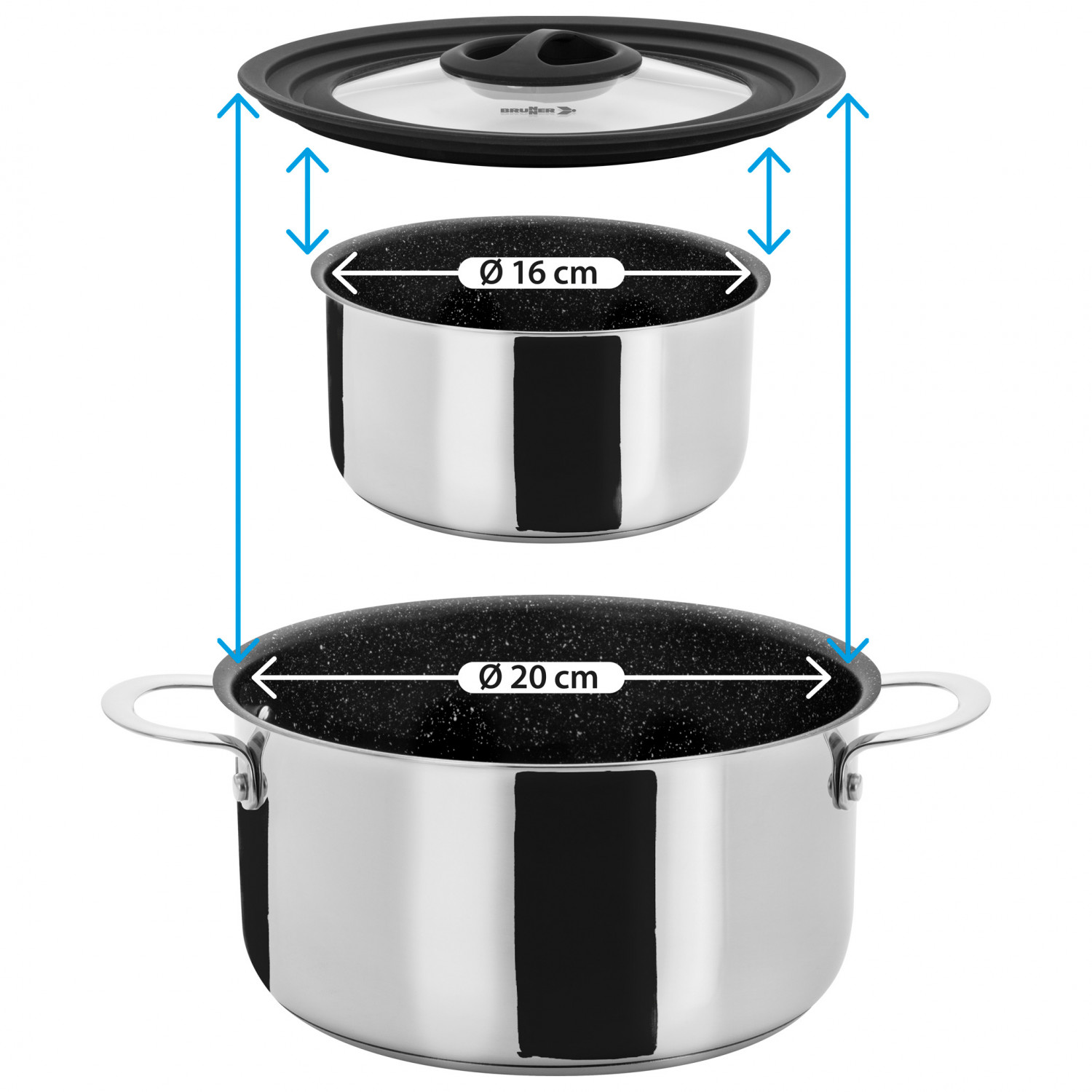 - 19/16,6/19,5 cm (Ø casserole/poêle/casserole); 20/18/16 cm (Ø couvercle)