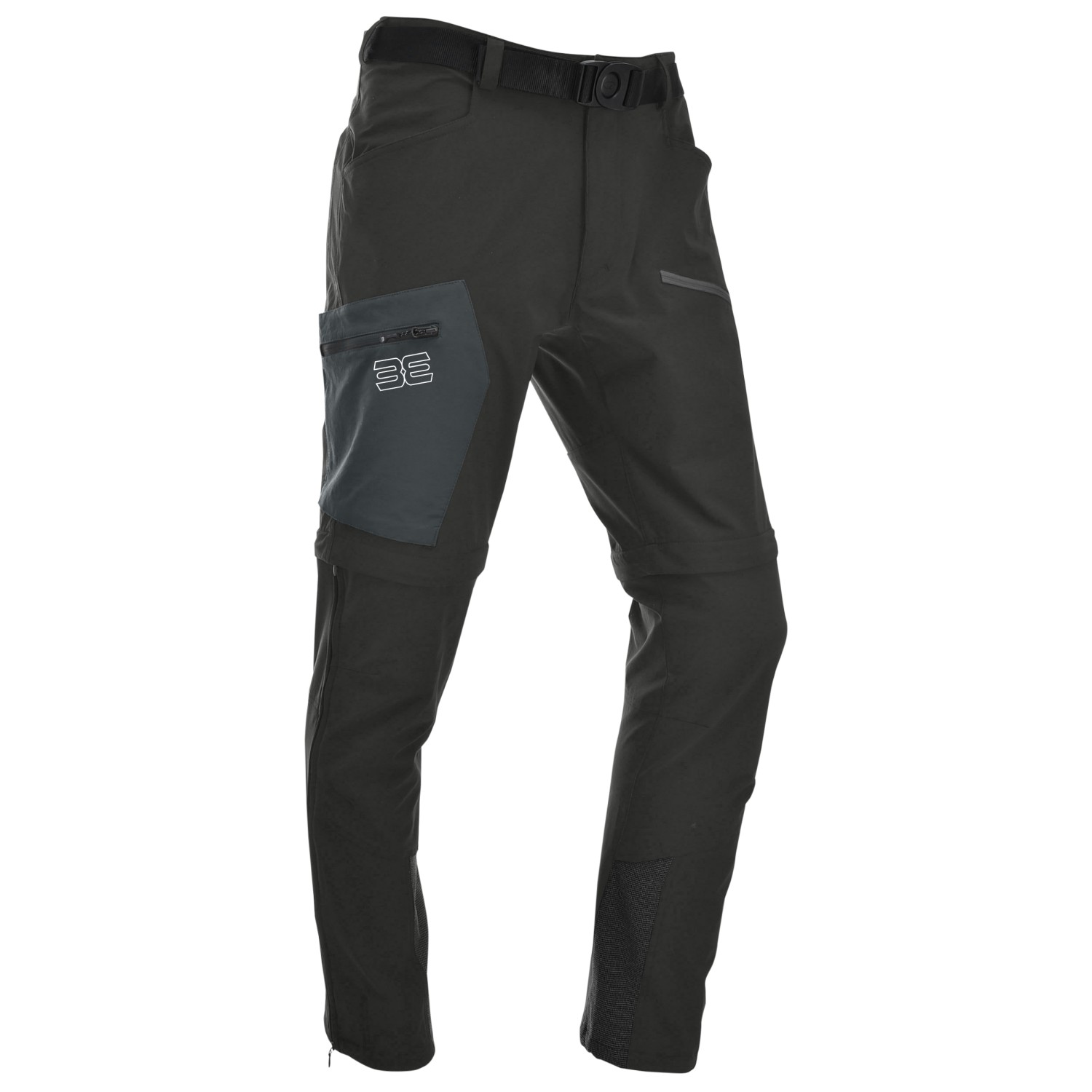 - passants de ceinture, renforts carres, bas de jambes réglables, genoux préformés, pantalon convertible