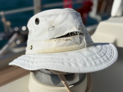 Ce chapeau auquel je tiens présente une déchirure du coton tout près de la piqûre.